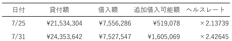 ・ヘルスレート=貸付額*担保掛目/借入額