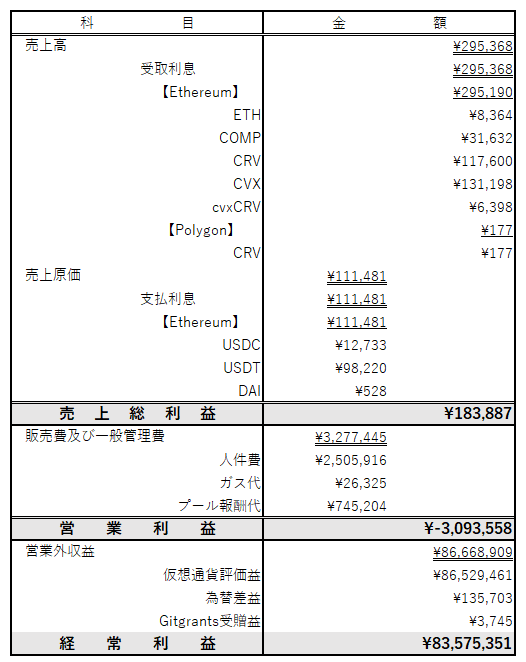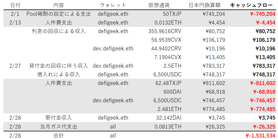 ・本記事はDeFiGeek Communityが、日本会計基準による2022年度2月度に関する会計情報の提供、資金使途の透明性の担保を目的として作成しているものです。