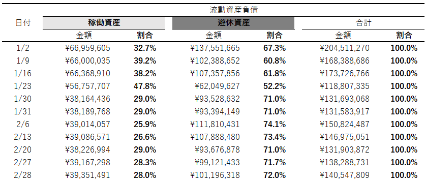 ・稼働資産:貸借対照表の流動資産にあるLPを合算し算出。