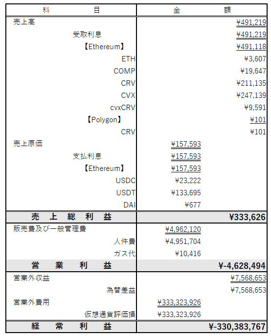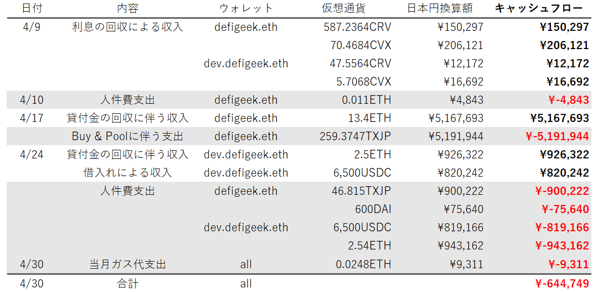 ・本記事はDeFiGeek Communityが、日本会計基準による2022年度4月度に関する会計情報の提供、資金使途の透明性の担保を目的として作成しているものです。